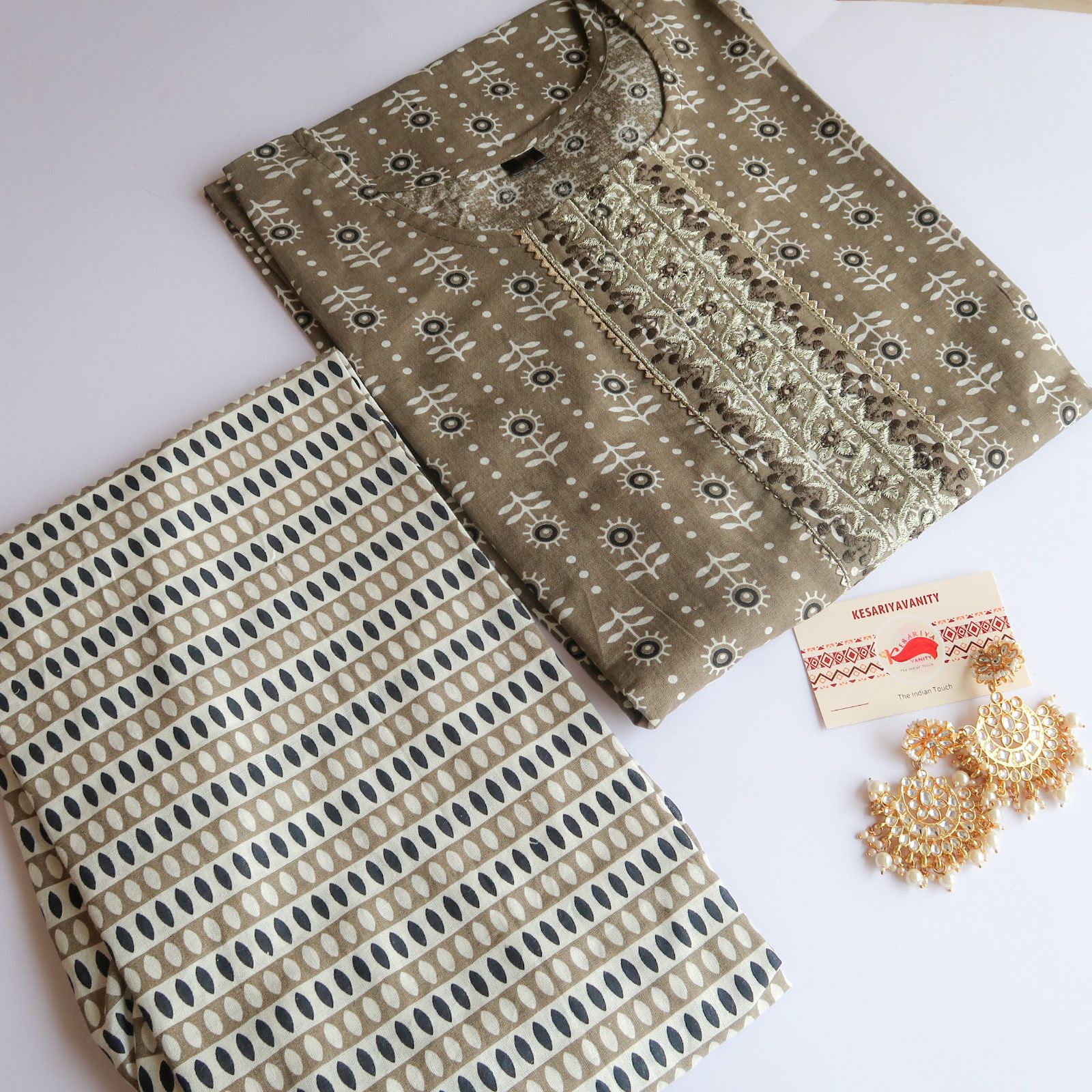 cotton kurta with cotton pants, Half drawstring and half elastic closure.