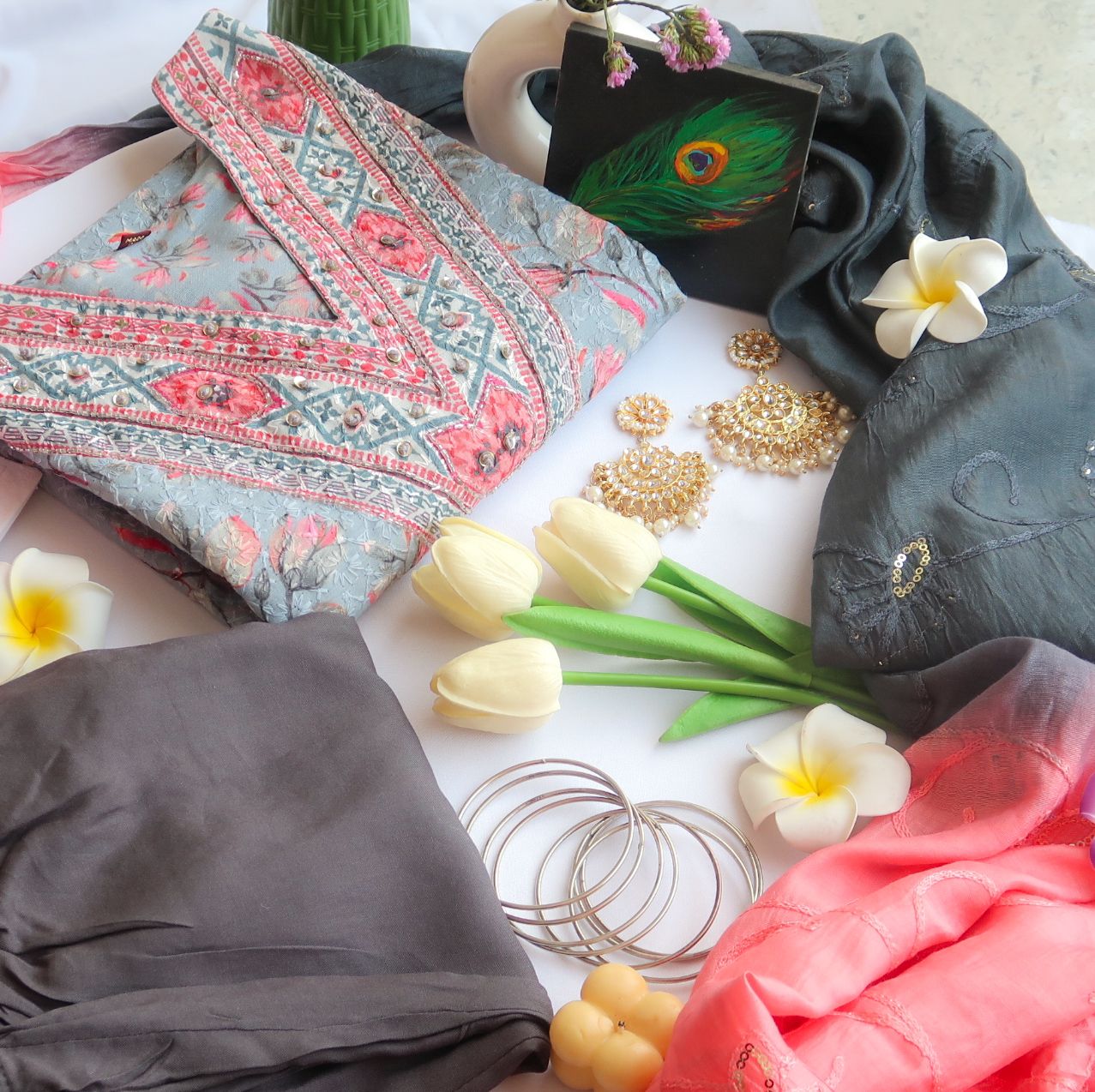 Completing this ethereal ensemble is a grey-colored dupatta adorned with intricate embroidery, mirroring the kurta's hues in a harmonious dance of color. Whether you're attending a festive celebration or a casual gathering, this ensemble promises to elevate your style with its timeless appeal. Step into the spotlight with confidence and grace in our Grey Harmony Kurta Set.