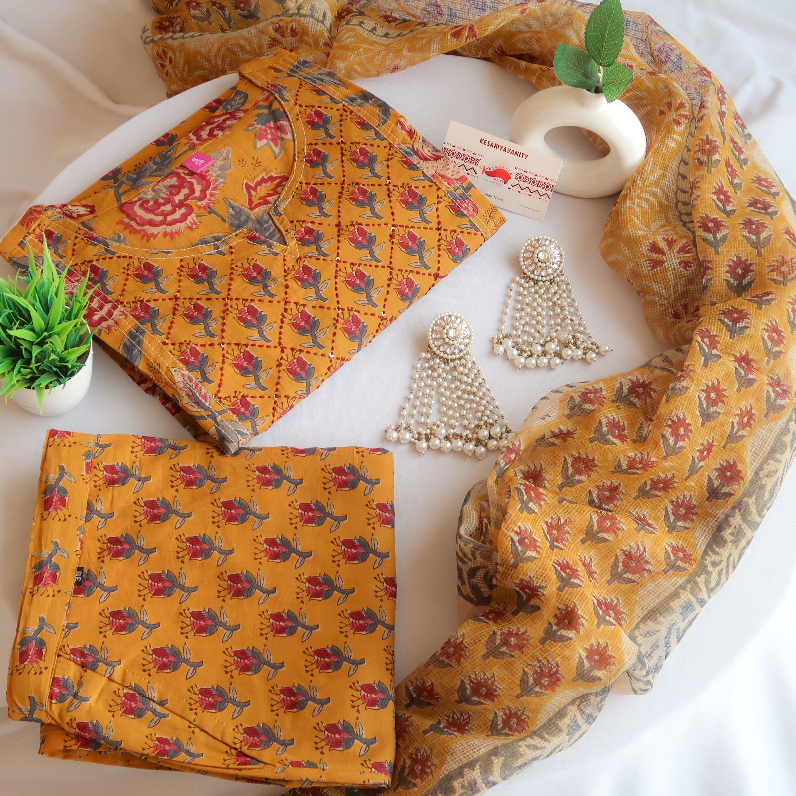 Vasantika Mustard Bloom Delight Suit Set - Doriya